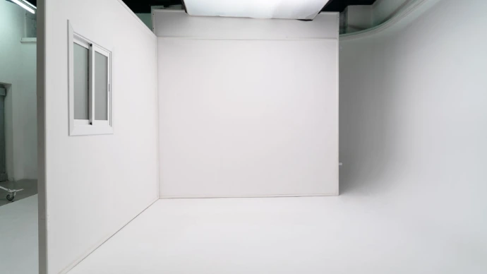 Nuestro ciclorama es un espacio de fondo infinito diseñado para producciones audiovisuales de alta calidad. Su pared curva continua elimina las esquinas visibles, generando un entorno uniforme y limpio, ideal para fotografía, vídeo y la creación de efectos especiales, garantizando resultados impecables y sin interrupciones visuales.